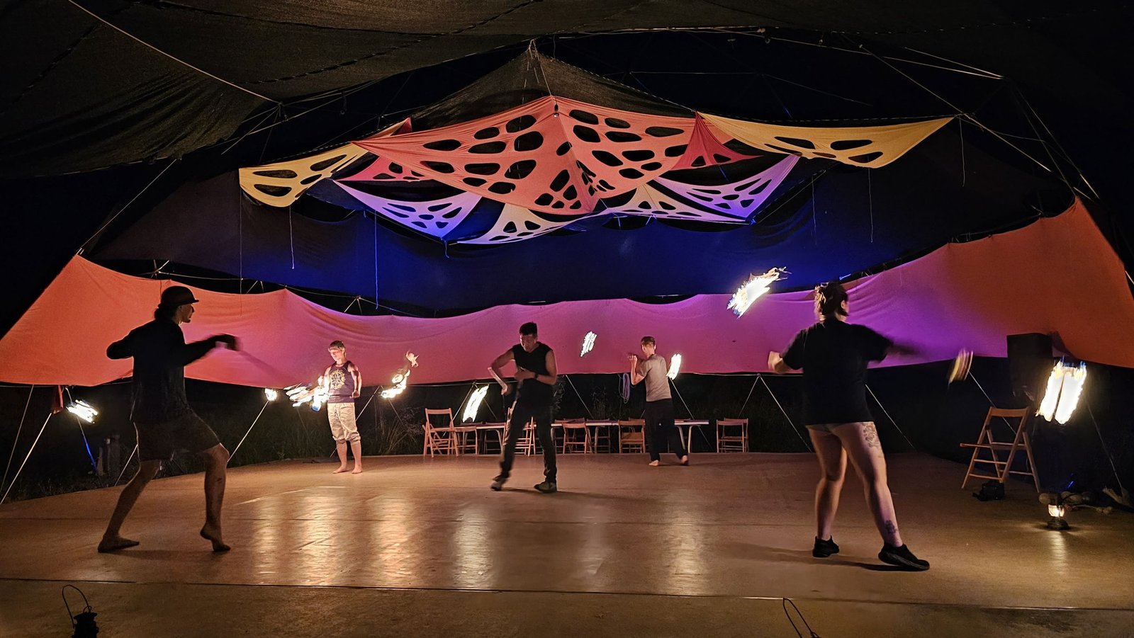 Poi geometry? We go there. Contact Staff precision? Yes. Tech Fans details? Obsessively. And you’re not watching tutorials — you’re being guided by world-class flow artists in an intimate space built for real growth.